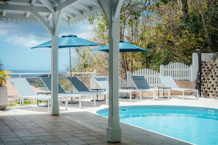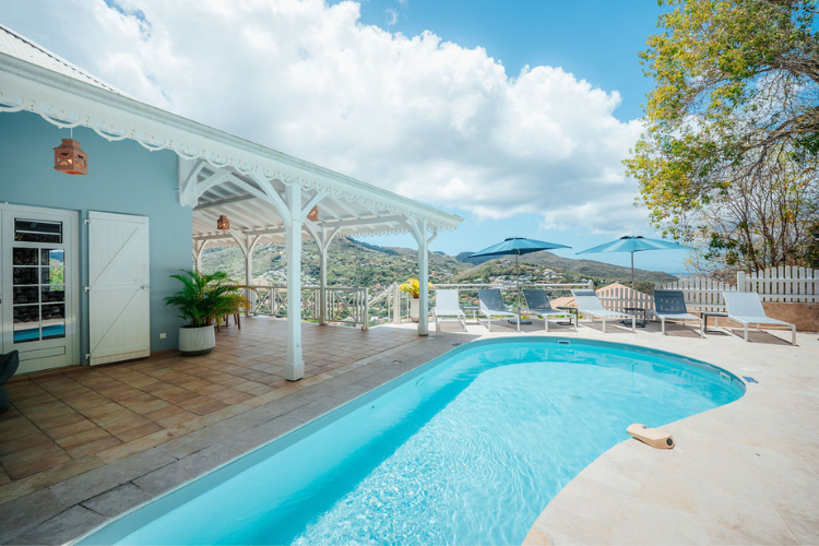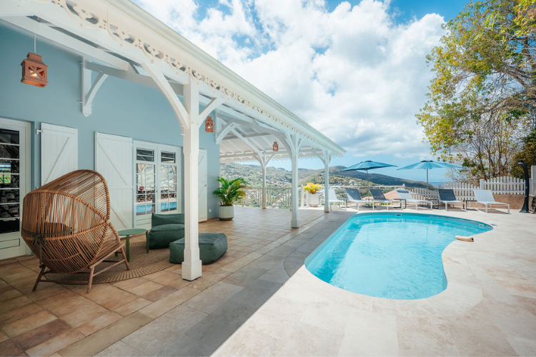 La Baie Turquoise is a 227-square-meter luxury villa located on the hills above Anse à l'Âne in Les Trois-Ilets.